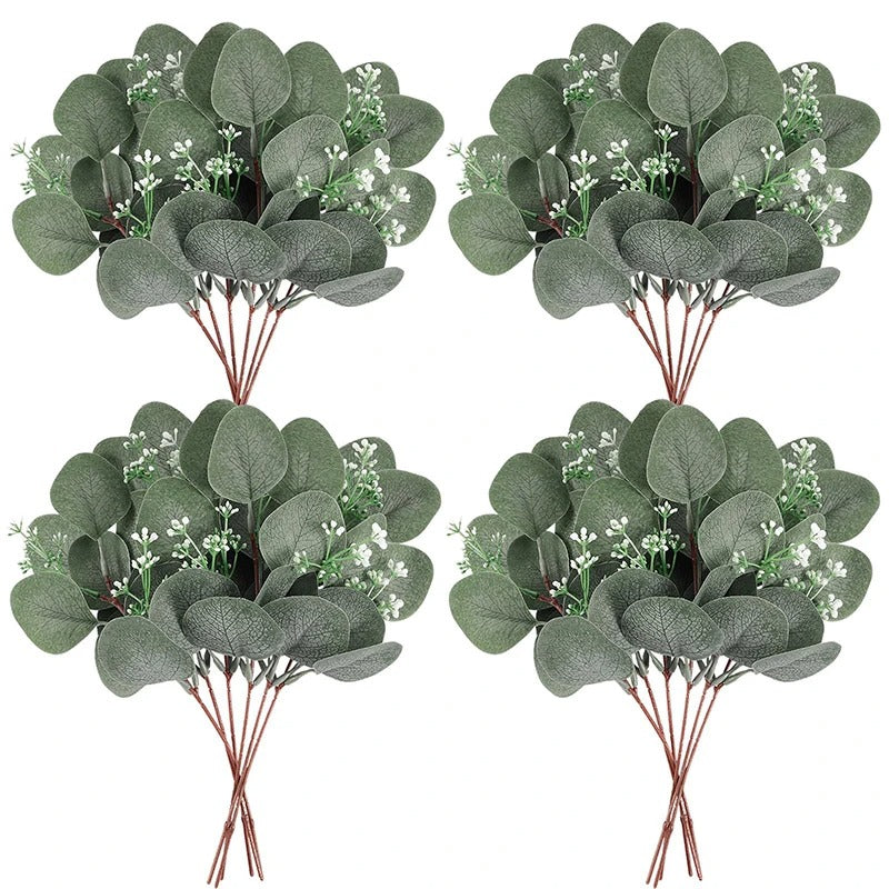 The artificial eucalyptus leaves mimic the natural look, adding a touch of greenery without the maintenance of real plants.