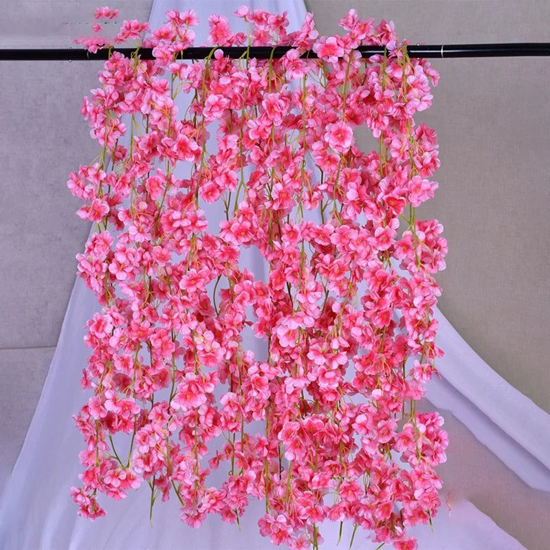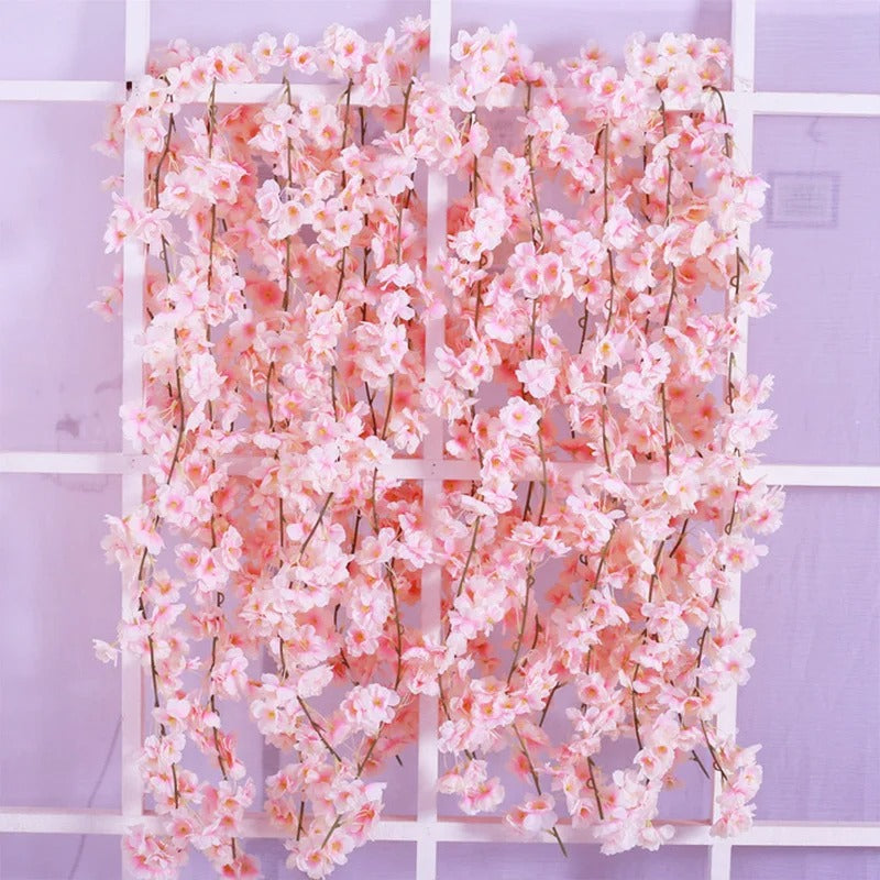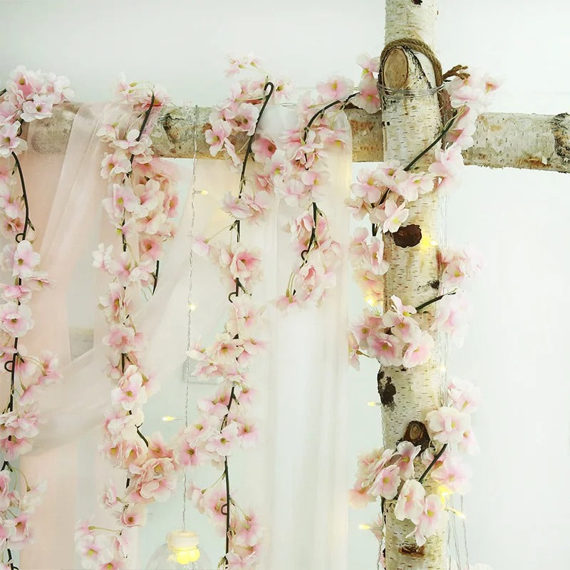 5.9ft Cherry Blossom Artificial Flowers Vine Fake Flower Rattan Wreaths Decoration for Home Garden Wedding Decor Flowers Garland