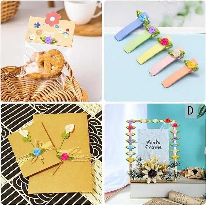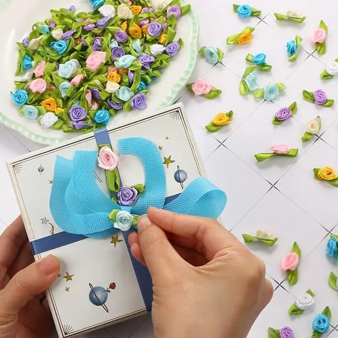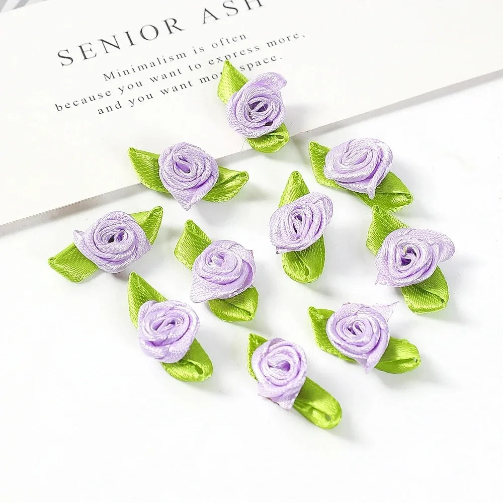 50/100PCS Mini Handmade Rose Flower Satin Ribbon Rosettes Fabric Appliques For DIY Wedding Decoration Craft Sewing Accessories
