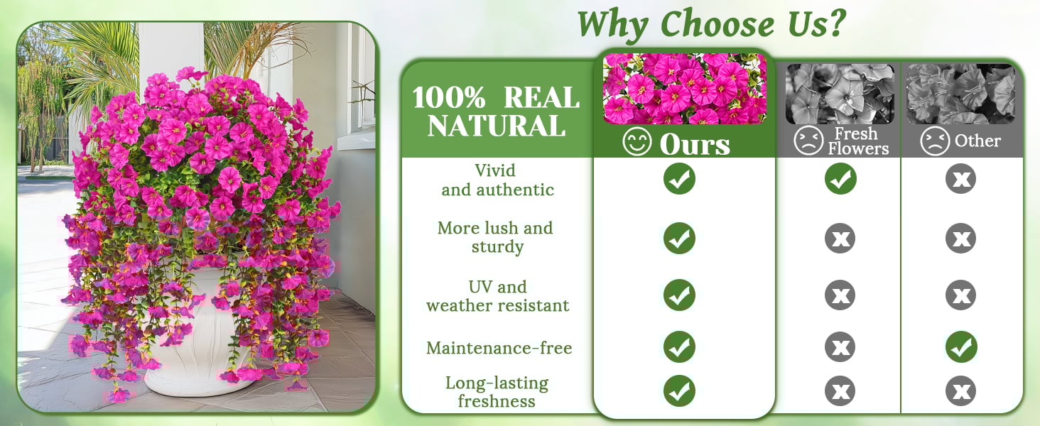 Tired of wilting flowers? Our UV-resistant artificial hanging flowers bring lifelike beauty to your porch, patio, or gardenāwithout watering, pruning, or fading!