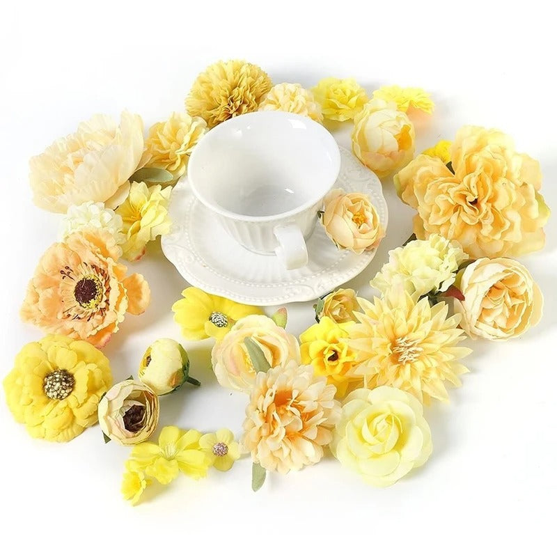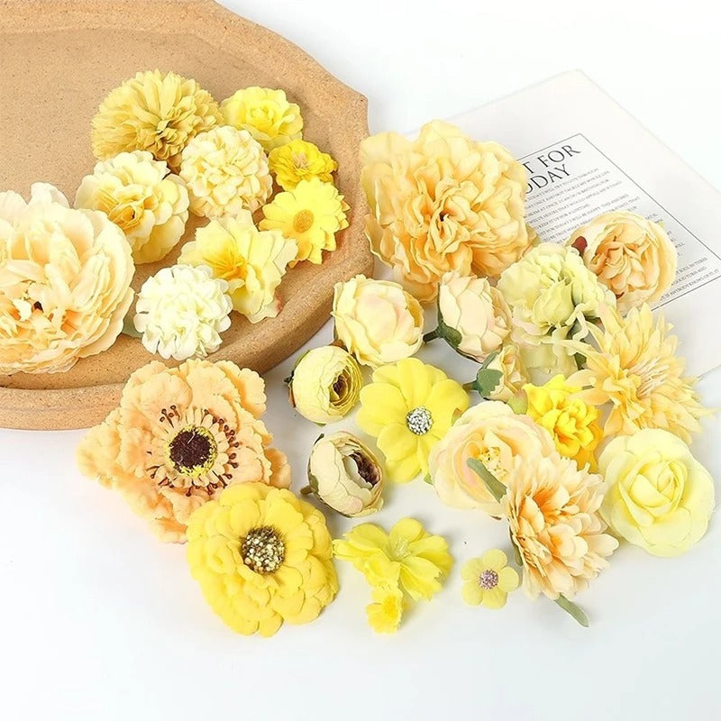 Yellow Artificial Flowers Heads Silk Fake Flowers for Home Decor Party Wedding Decoration DIY Valentine's Day Gifts Accessories